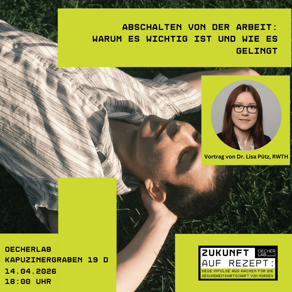Die Veranstaltung richtet sich an alle Interessierten, die verstehen möchten, warum Abschalten oft schwerfällt, wie es funktionieren kann und warum es wichtig ist. Anschließend gibt es Gelegenheit zum Austausch im OecherLab-Foyer.