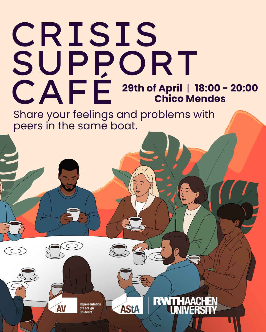 Treffen Sie sich bei Kaffee und Kuchen mit Gleichgesinnten und Studierenden der AStA-Sozialberatung.