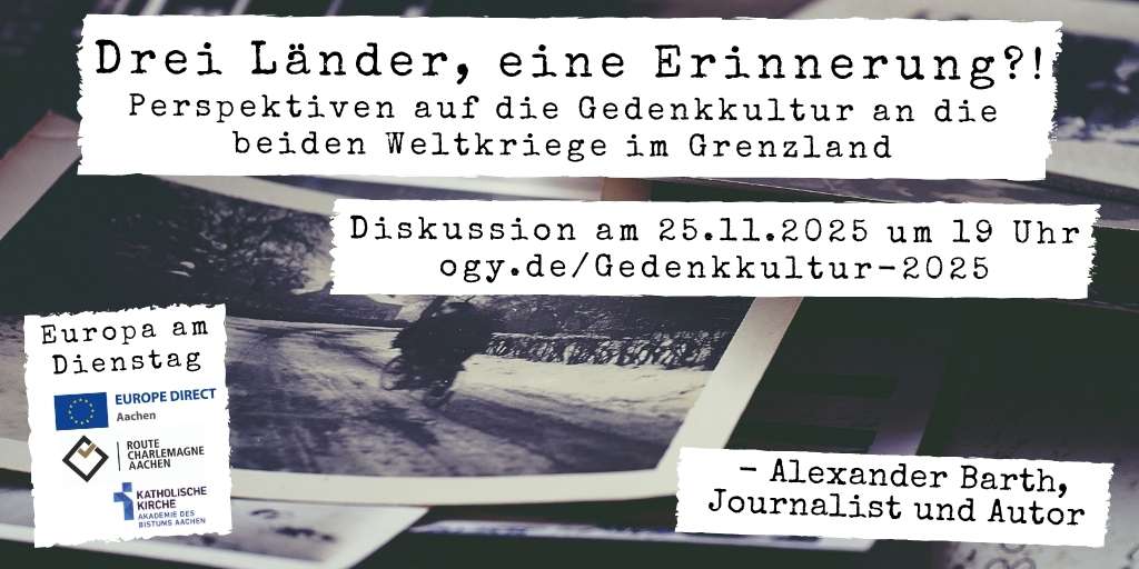 Fragen aus dem Publikum sind willkommen. Die Moderation übernimmt Andreas Düspohl. Er ist Leiter des Grashauses und des Internationalen Zeitungsmuseums. Zusammen mit EUROPE DIRECT Aachen organisiert er seit 2018 die Reihe ‚Europa am Dienstag‘.