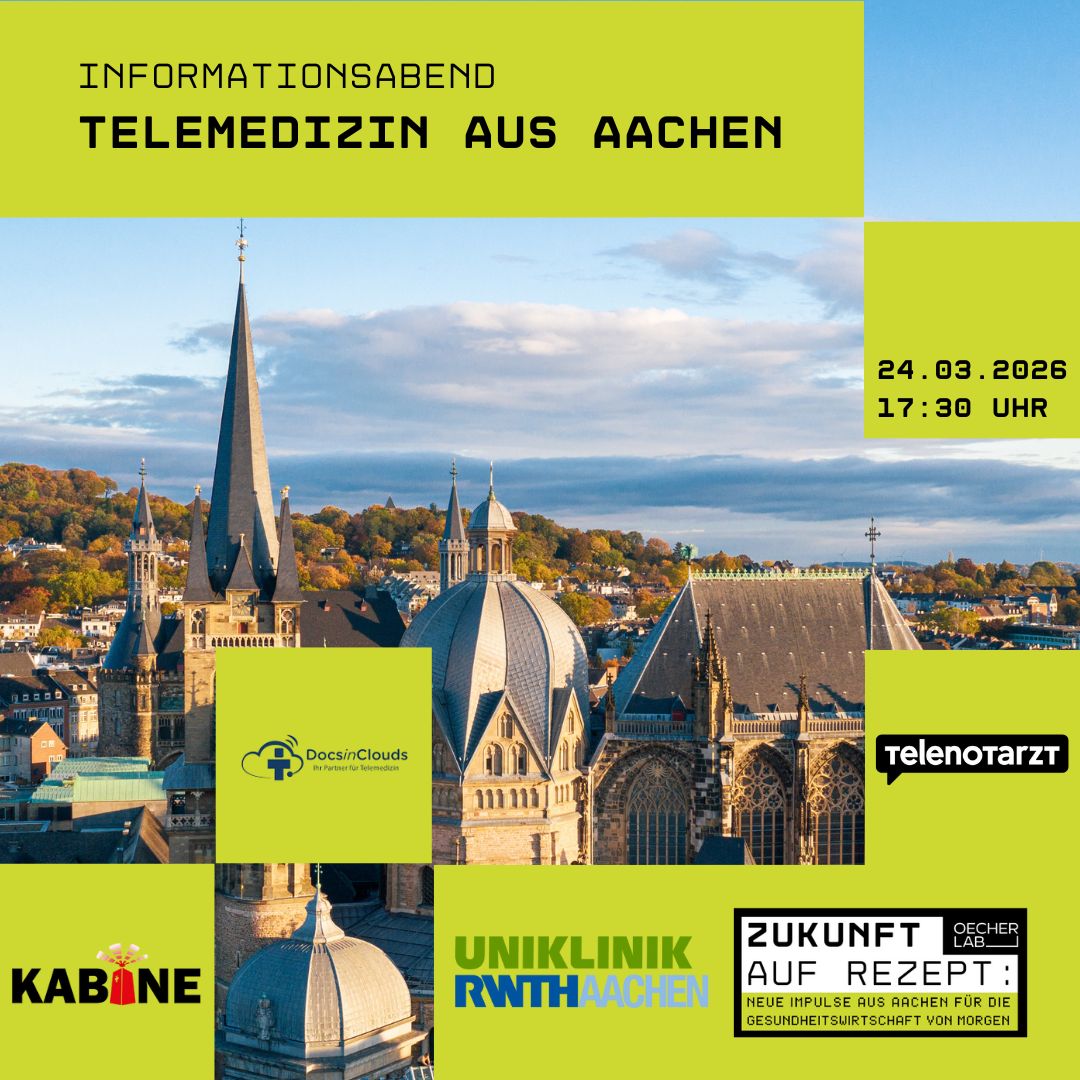 Aachen gilt als Modellregion für digitale Gesundheitsinnovationen: mit starken Forschungs- und Innovationsclustern, realen Anwendungsszenarien – etwa in der akuten Notfalltelemedizin – und einer engen Verzahnung von Wissenschaft, Versorgung und Praxis. Diese Veranstaltung nutzt den Zukunftsraum im OecherLab, um diese Perspektiven zusammenzubringen und öffentlich zugänglich zu machen.