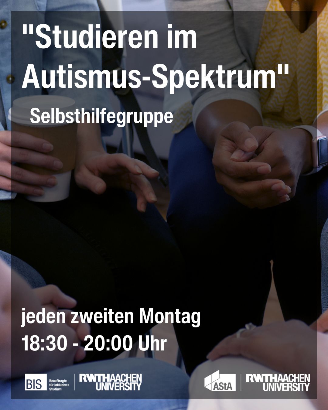 Am 20.10. ist die neue Selbsthilfegruppe „Studieren im Autismus-Spektrum“ der Beauftragten für Inklusives Studium (BIS) gestartet. Die Selbsthilfegruppe richtet sich an Studierende der RWTH Aachen im Autismus-Spektrum oder mit einer Verdachtsdiagnose. Die Treffen bieten einen offenen und sicheren Rahmen zum Austausch mit anderen Studierenden in ähnlichen Situationen, um Unterstützung zu finden und sich zu vernetzen. In einer vertrauensvollen und wertschätzenden Atmosphäre kann über Themen und Situationen gesprochen werden, die einen beschäftigen. Mehr Informationen auf der Seite der BIS der RWTH Aachen: www.rwth-aachen.de/selbsthilfe Bei Interesse einfach eine E-Mail schreiben an selbsthilfe@bis.rwth-aachen.de.